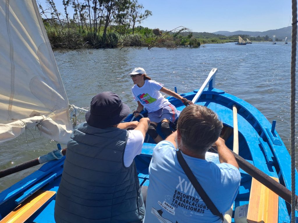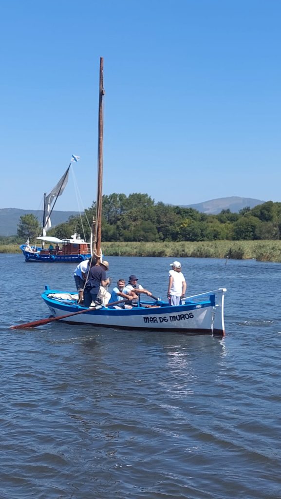 No Mar de Muros tivemos como tripulantes a remeiros veteranos de Rianxo (grazas a eles tamén poidemos remontar as correntes ao pasar polos lombos do Ulla) e ao noso amigo mariñeiro e artista Xosé Iglesias (que tamén colaborou ao remo).